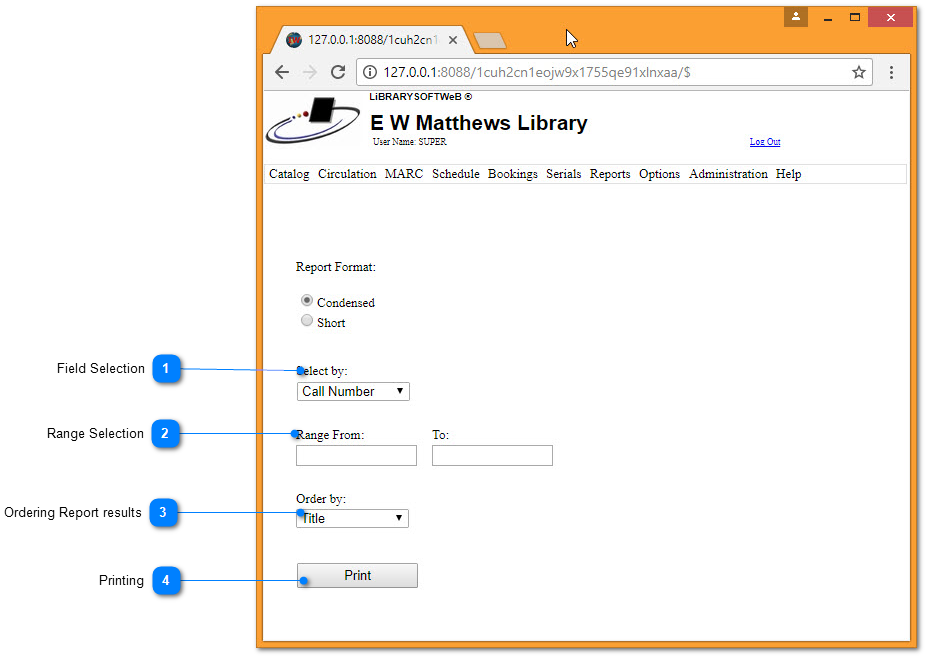 The Shelf List Report provide a good general example of how to use Reports.